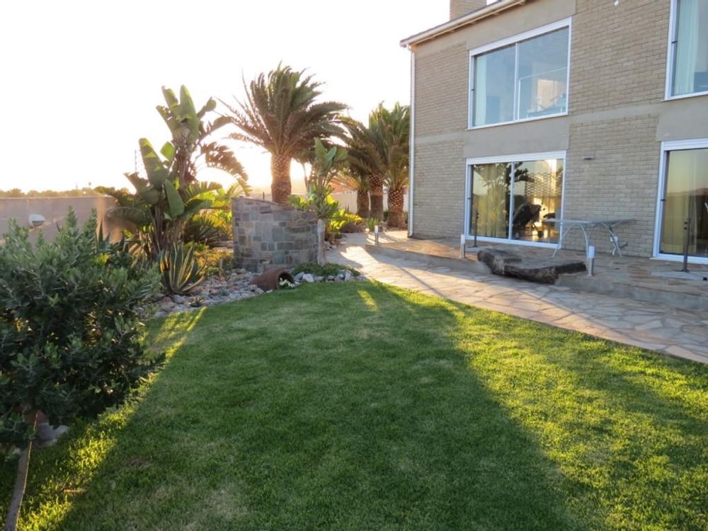 Beautifull garden with large Palm trees