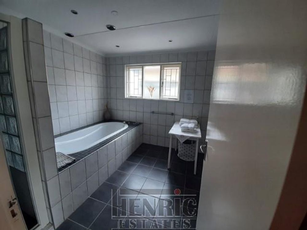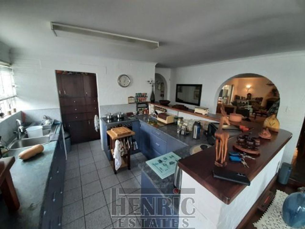 This elegant main house features a fully equipped open-plan kitchen, perfect for culinary enthusiasts. Adjacent to the kitchen, you'll find a convenient pantry and laundry/scullery, ensuring ample storage and functionality. The home includes a linen cupboard, keeping your linens organized and accessible.