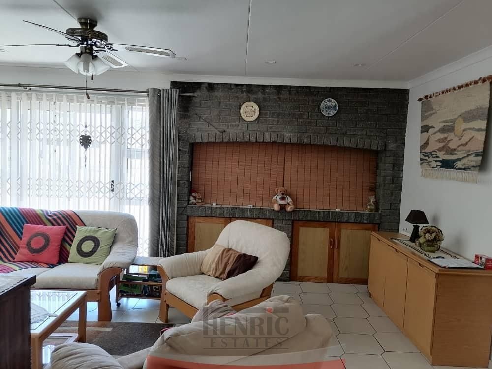 At the heart of the home is a large kitchen featuring a scullery and open-plan living areas. Here, you’ll discover a cozy study nook, a comfortable TV room, and an indoor braai area—perfect for entertaining guests or enjoying family gatherings year-round.