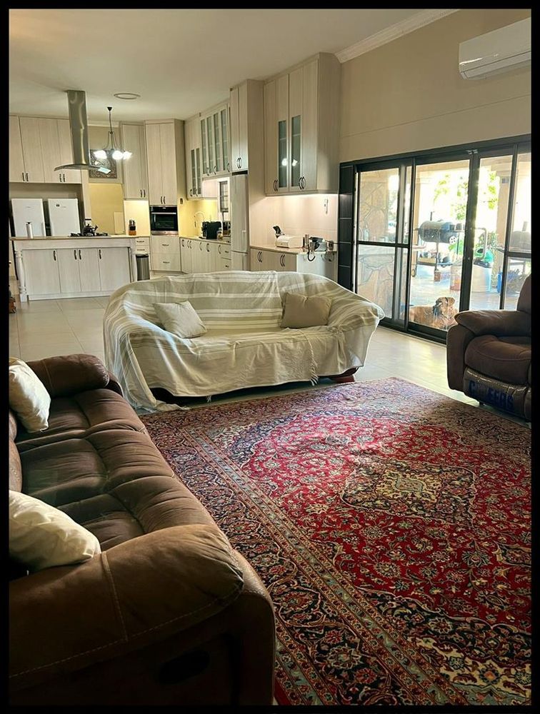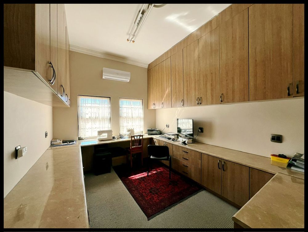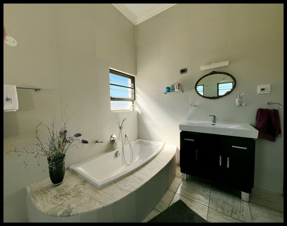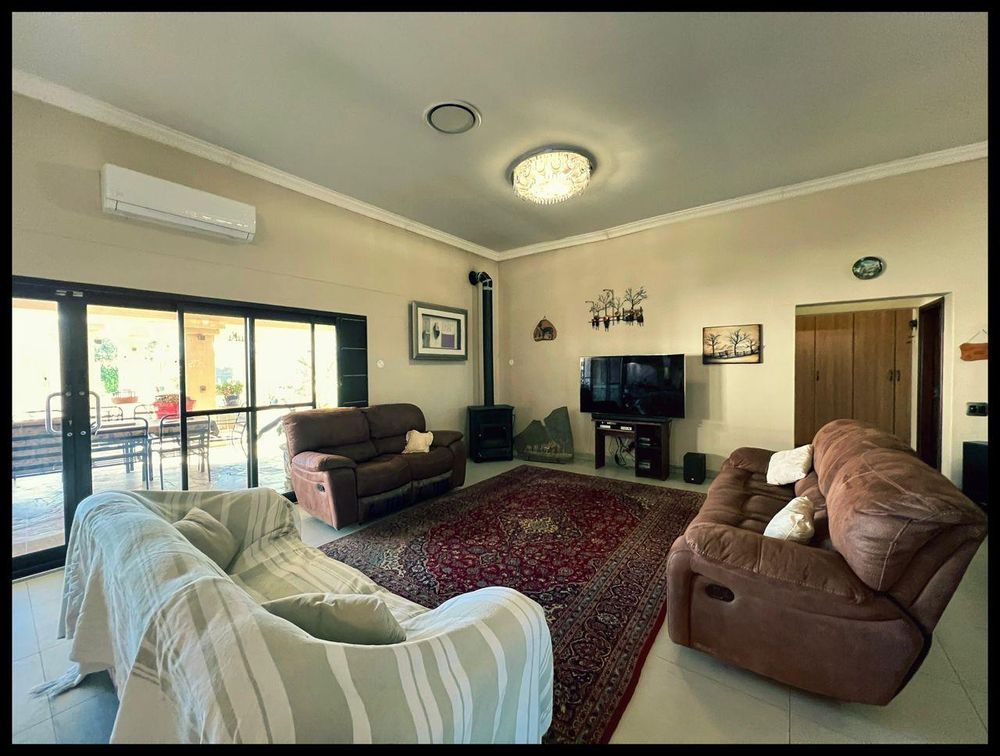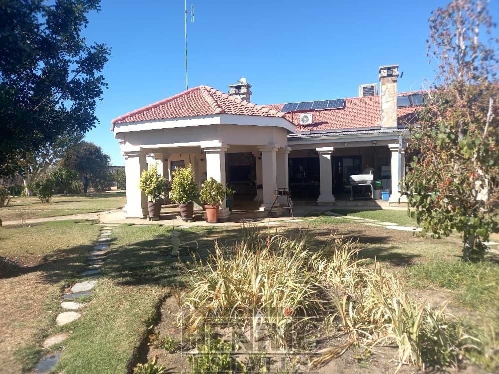 This modern 3-bedroom house has a huge open plan living area with a kitchen to die for with a dining room, lounge, tv room, all opening on to an outside entertainment area with braai etc., there is an office and hobby room as well as a granny flat with separate patio and entrance. The underfloor heating, water cooling system. state of the art solar energy installation with a backup generator, the grey water system for gardening, registered borehole as well as access to municipal water and numerous outbuildings makes this value for money and basically self-sustained living.