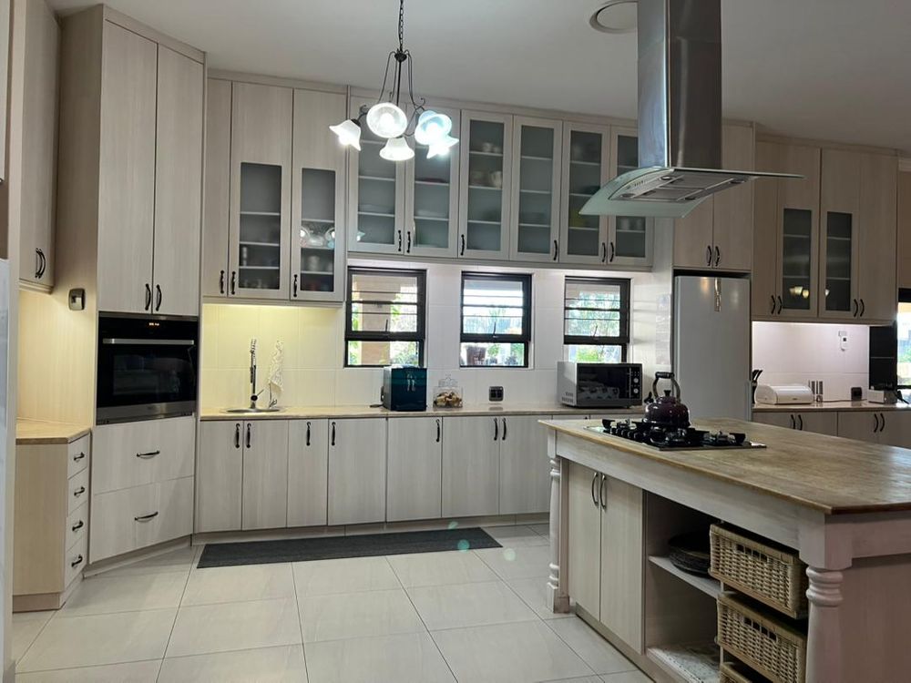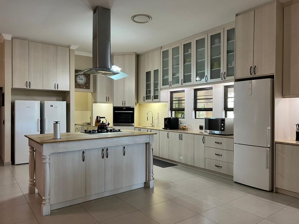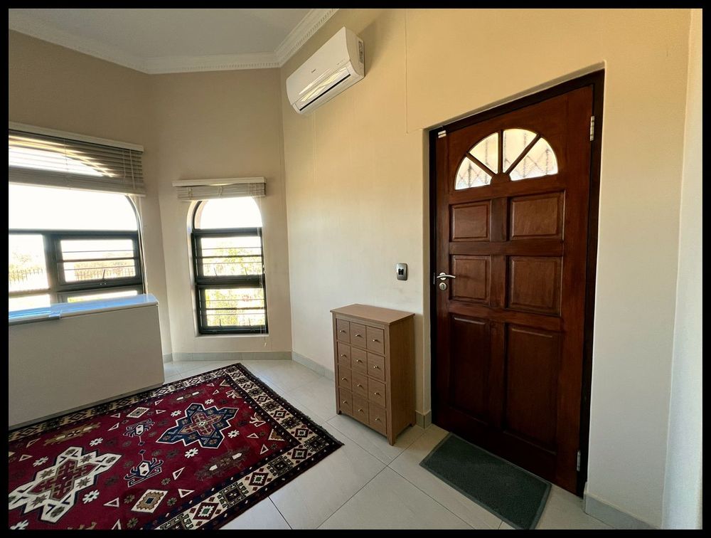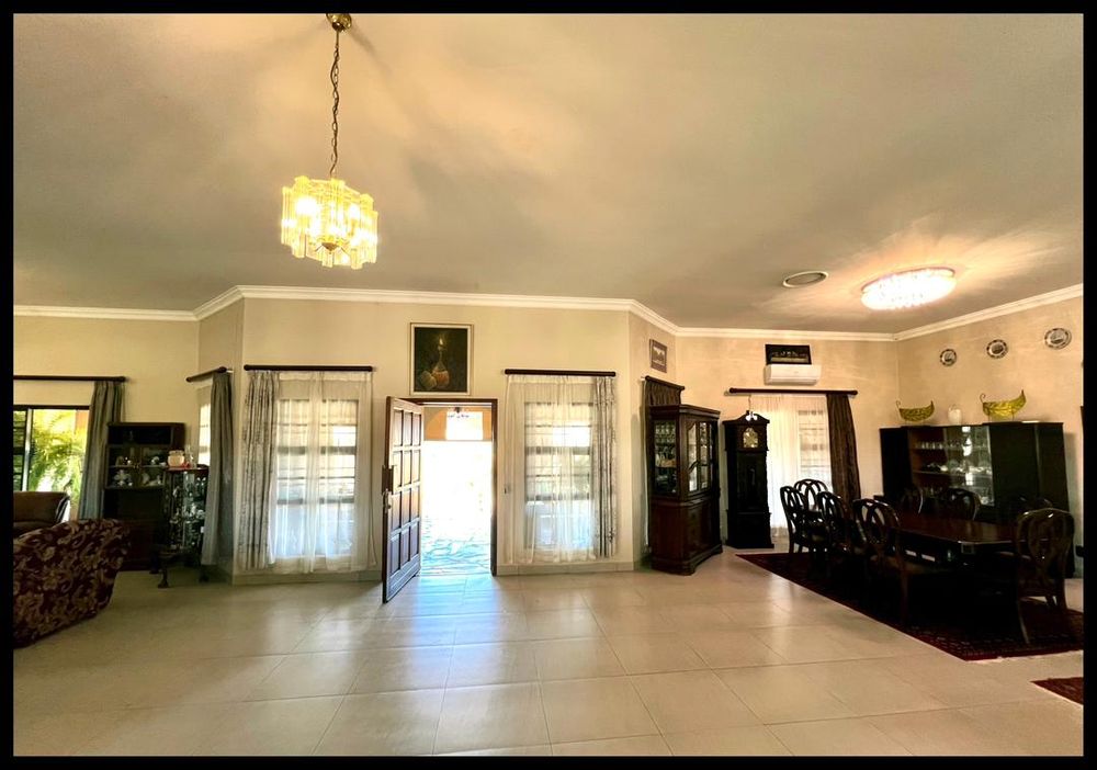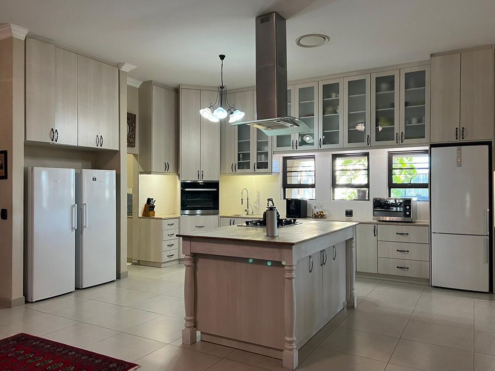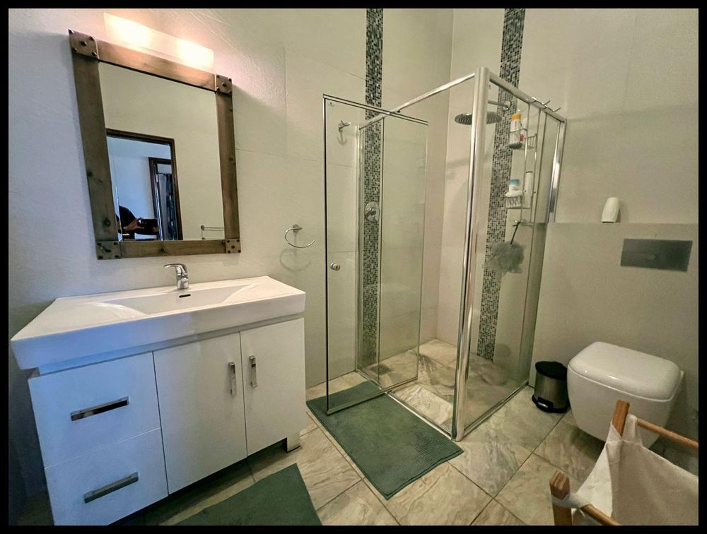 This modern 3-bedroom house has a huge open plan living area with a kitchen to die for with a dining room, lounge, tv room, all opening on to an outside entertainment area with braai etc., there is an office and hobby room as well as a granny flat with separate patio and entrance. The underfloor heating, water cooling system. state of the art solar energy installation with a backup generator, the grey water system for gardening, registered borehole as well as access to municipal water and numerous outbuildings makes this value for money and basically self-sustained living.