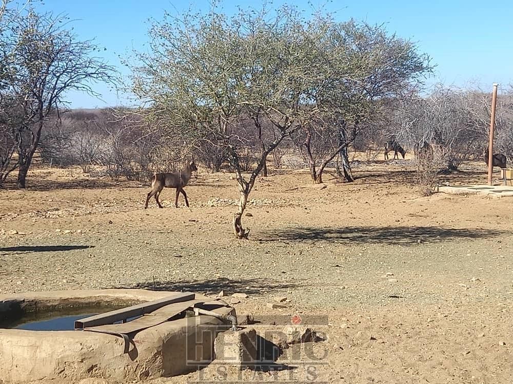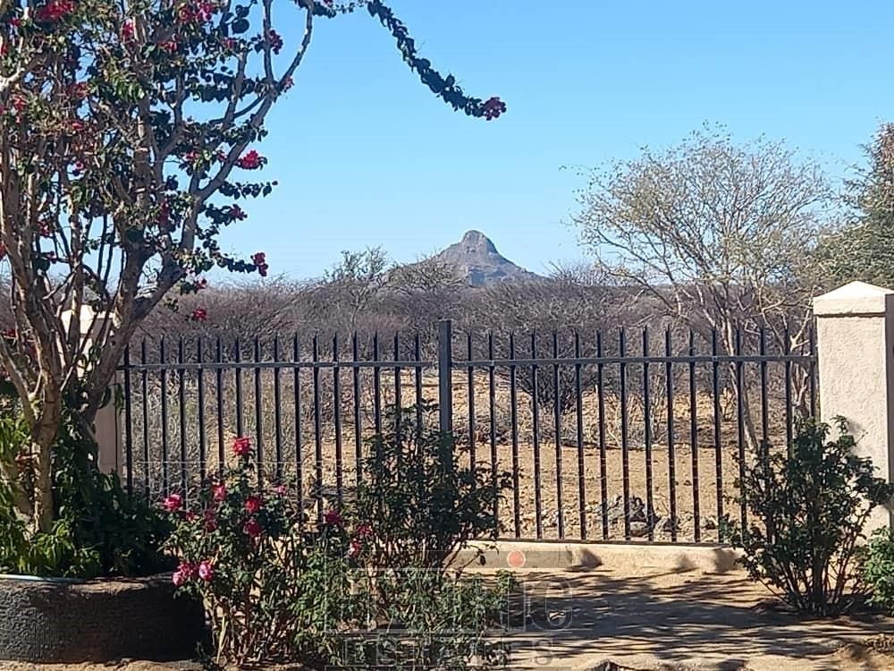This gem is situated in the ever so popular Omaruru Wildlife Estate, a security estate which houses 55 plots about 6 km from Omaruru on the Uis road. The estate is fenced in with an electrical fence and the entrance is controlled and guards patrol the borders regularly. The wildlife consisting of giraffe, zebra, kudu, oryx, springbuck, duiker, waterbuck, hartebeest, ostrich roam around freely from plot to plot. There is also lots of bird life. Owners have waterholes and feeding stations near their houses.
