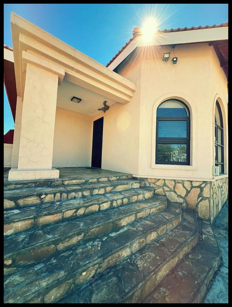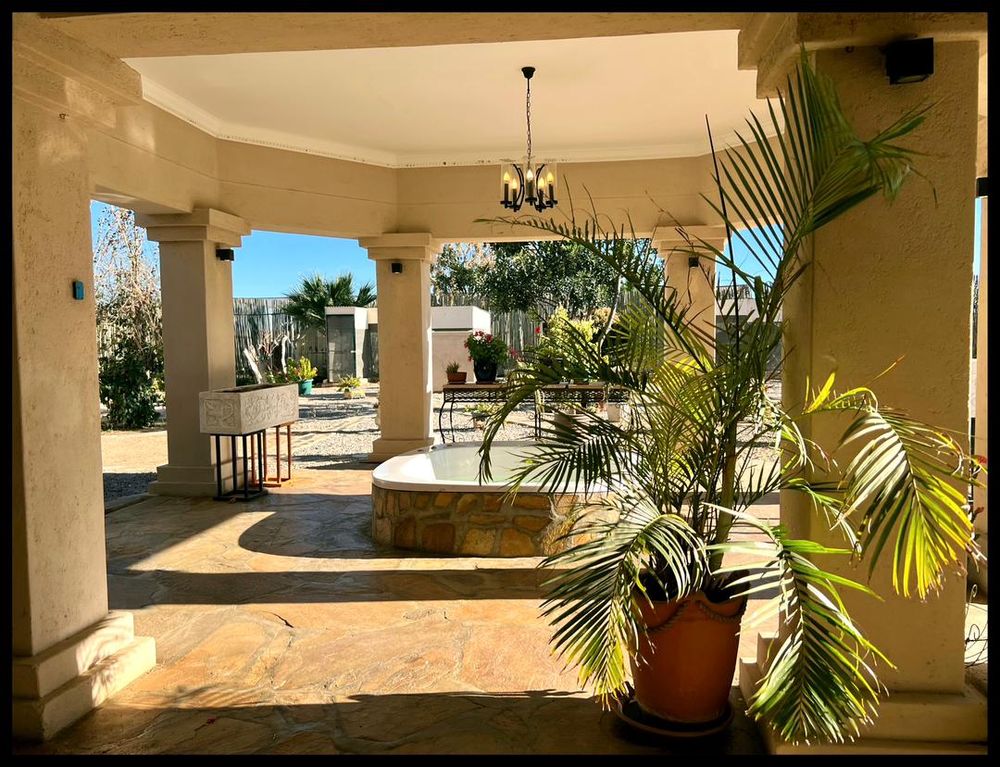 Lots and lots of fruit trees, a lovely garden and lawn and the spectacular view of the Omaruru Koppie and the Erongo Mountains from the comfort of the front verandah makes this a paradise.