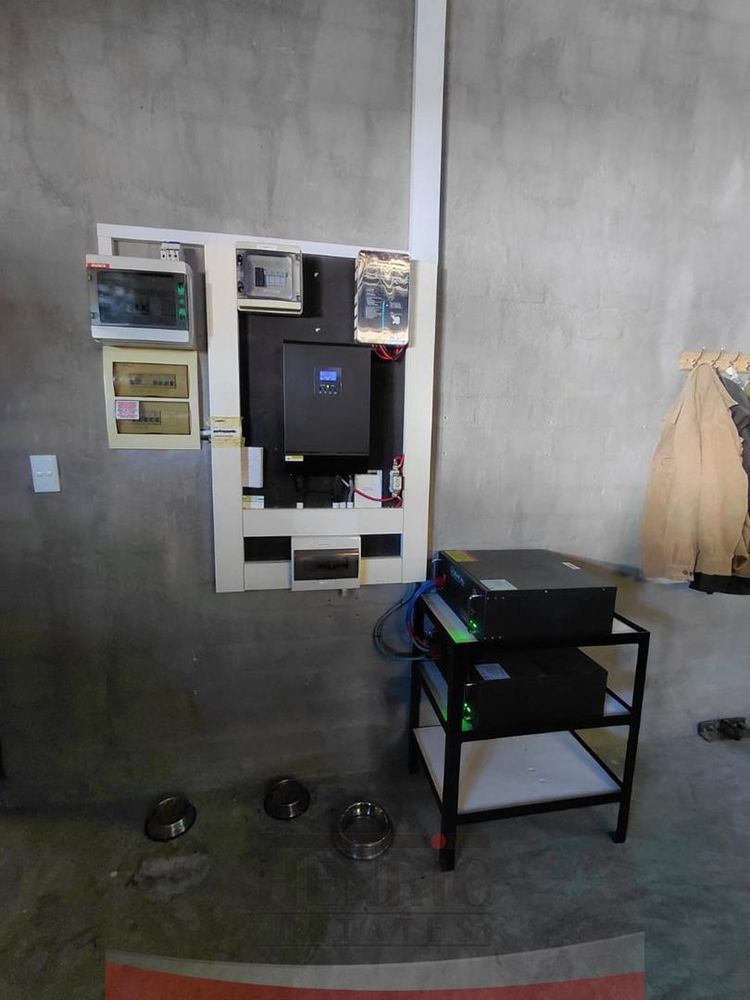 Water supply is ample, with two 10,000-liter water tanks equipped with a pressure pump and a storage container. The property is impeccably maintained, showcasing a well-established garden. Approximately one hectare around the house is securely fenced with a remote-controlled gate. For added security, the property includes an alarm system and motion sensors.